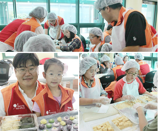 우리나라 대명절인 추석을 맞이하여 경제적인 어려움이 있거나 가족이 없는 소외된 이웃들이 조금이나마 따뜻한 추석을 보낼 수 있도록 SK건설 가족봉사단 80여명이 함께 하였습니다. 이 날 만들어진 음식은 사회적 기업 떡찌니와 함께 준비하였으며, 송편, 인절미 등 떡과 함께 식혜 등을 저소득 장애인 가정 100가정에게 전달하였습니다.