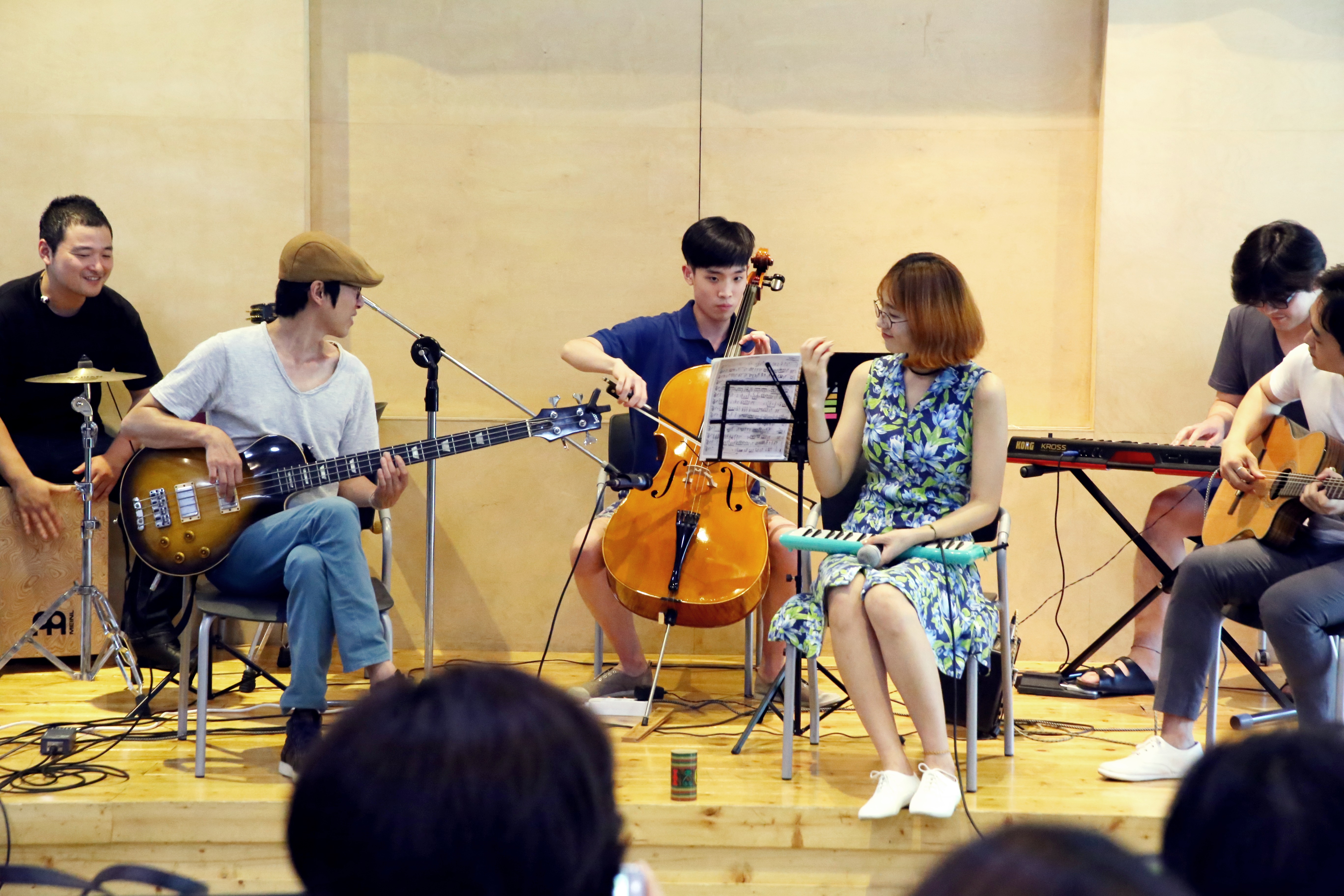 또, 이번 캠프에는 작곡가 이종필과 보컬 신잔디로 구성된 팝밴드 로맨스탭이 단원들과 학부모들을 위한 재능나눔 공연을 펼치기도 하였습니다. 문화공연을 접할 기회가 많지 않은 단원들을 위해 여름음악캠프를 찾은 로맨스탭은 단독공연 외에도 지적장애 3급인 차지우 단원과 함께 협연을 펼쳐 감동의 무대를 선사하기도 했습니다. 이 날 차지우 단원은 로맨스탭과의 협연을 통해 밀알첼로앙상블 날개의 음악적 가능성을 보여준 멋진 연주를 들려주었습니다.