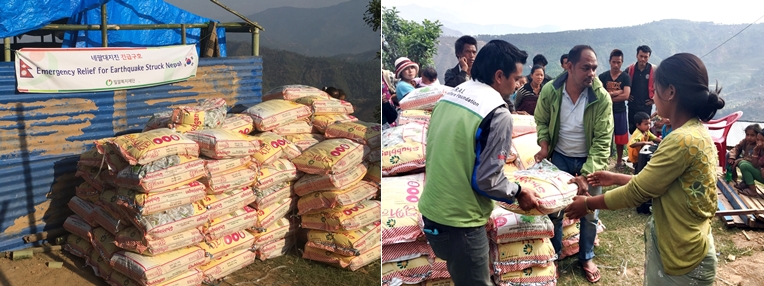 ▲ 신두팔촉(Sindhupalchok) 지역에서 식량 배분 중인 모습