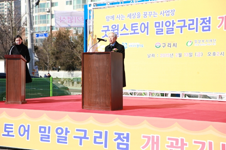 축사를 전한 남경필 경기도지사는 “올 겨울에 입지 않았던 옷들을 정리해 굿윌스토어 밀알구리점에 기증할 것”이라며 굿윌스토어 이용에 앞장설 것을 약속했습니다. 또한 박영순 구리시장은 “굿윌스토어 밀알구리점의 성공을 위해 지역사회가 함께 도울 것”이라며 “장애인을 비롯한 소외된 이웃들에게 편견없이 사랑과 나눔을 실천하는 아름다운 구리시가 되도록 노력하겠다”는 포부를 밝혔습니다.