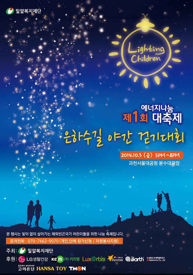 '제1회 에너지 나눔 대축제 - 은하수길 야간 걷기 대회'는 전력 수급 체계가 열악하여 빛 없이 살아가는 해외빈곤국가 어린이들에게 희망의 빛을 전달하기 위해 열리는 축제인데요. 이 날 진행 될 '은하수길 야간 걷기대회'에 참가하시는 분들은 고려기프트가 우리재단에 기증하기 위하여 특별 제작한 카드목걸이 지갑을 만나실 수 있습니다.