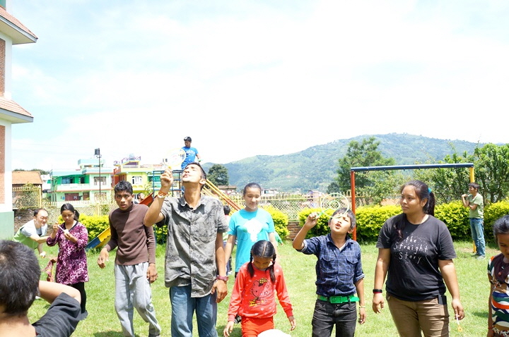 이방인 손님들을 맞은 아이들의 호기심 가득한 눈빛. 하지만 그 속엔 경계가 아닌 우리를 반가워하는 미소가 있었다. 한국에서 열심히 준비한 수업을 하는데, 비록 말은 잘 통하지 않았지만 아이들과 수업시간 내내 함께 웃고 즐길 수 있어 참 좋았다. 특히 기억에 남은 시간은 처음 밀알학교에서 학생들과 만나서 인사를 하고 함께 운동장에 나가서 비눗방울 놀이를 한 것이다. 처음이라 어색하고 가까이 하기 쉽지 않은 아이들과 비눗방울 놀이를 통해 서로의 숨결을 느낄 수 있을 정도로 가까이 하고, 미소를 넘어 함께 깔깔대고 웃게 되었다. 현지 선생님들까지도 동참하여 한참을 시간 가는 줄 모르고 어린 시절로 돌아간 듯 즐겁게 놀았다.
