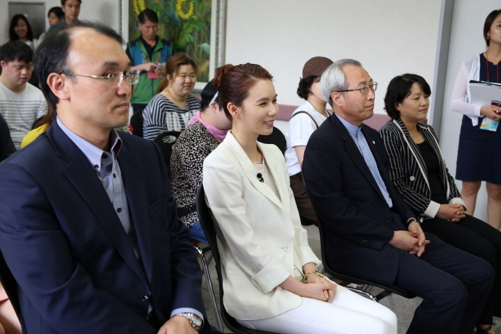 5월 27일(화), 우리재단은 배우 박시은씨를 홍보대사로 위촉하였습니다. 수서동에 위치한 강남구직업재활센터에서 열린 박시은씨의 홍보대사 위촉식은, 장애인근로자들이 모인 가운데 화기애애한 분위기로 진행되었습니다.