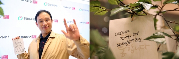 ‘모두의 화합이 있는 콘서트가 되기를’, ‘밀알콘서트는 장애인의 희망, 파이팅입니다’ 밀알콘서트를 응원하는 쪽지들이 나무에 가득합니다. 4월 28일(월) 저녁 8시, 예술의전당 콘서트홀에서 열린 제11회 밀알콘서트 현장. 우리재단과 예술의전당이 공동으로 주최한 밀알콘서트의 전경은 조금 특별했습니다.