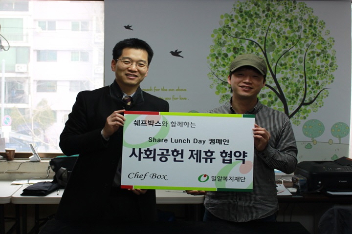 쉐프박스 김태경 대표는 “나눔에 대한 생각을 갖고 있었지만, 어떻게 실천해야 할지 방법을 몰랐다. 아내가 아이를 갖게 되면서 삶에 감사하는 마음이 더욱 커지고, 이 마음을 나누며 살고 싶었다. 맛있는 도시락을 만드는 일이 내가 가장 잘 할 수 있는 일인 만큼 즐거운 마음으로 나눔에 동참하고 싶다.” 며 사회공헌협약의 소감을 말했습니다.