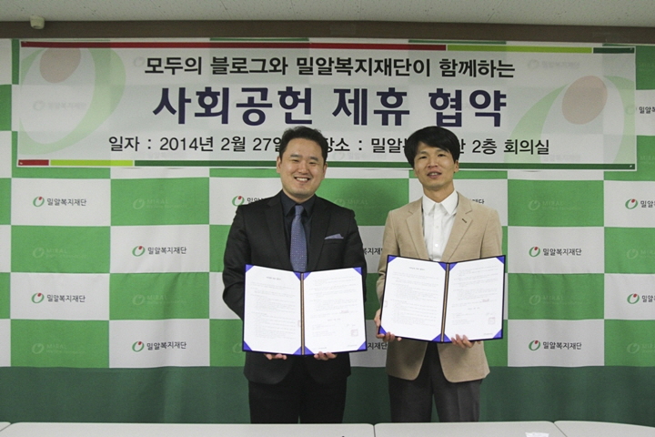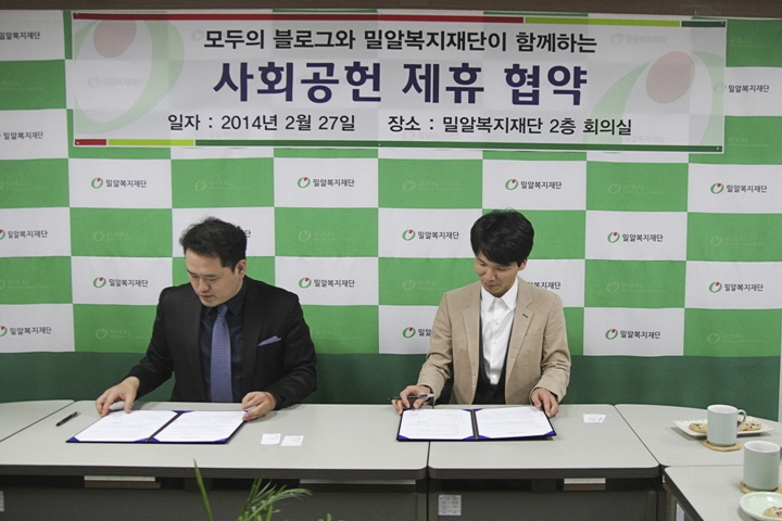 지난 2월 27일(목), 우리재단은 (주)모두의컴퍼니와 사회공헌 제휴 협약식을 진행했습니다. 온라인 마케팅 기업인 (주)모두의컴퍼니는 체험 마케팅 사이트인 ‘모두의블로그’를 통해 사이트의 회원들을 대상으로 매월 1회 이상의 메일링 지원, 사이트 내 배너광고 후원, 밀알복지재단의 나눔 캠페인을 알리는 이벤트 진행 등의 재능나눔을 통해 적극적인 사회공헌활동을 펼치겠다고 전했습니다.