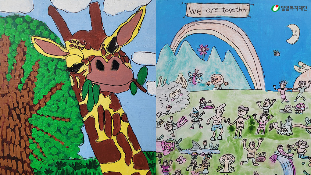 (좌)현승진 작가 '기린', (우)윤인성 작가 '우리 함께 모여서'