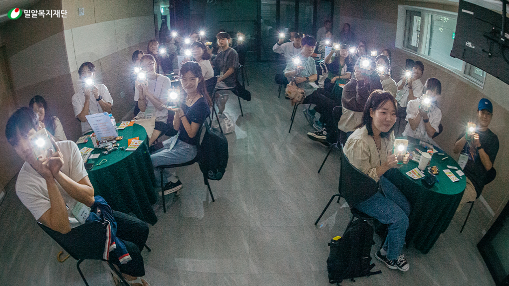 위촉장 수여를 마친 후, 밀알틔움봉사단의 주된 활동인 ‘라이팅칠드런’ 캠페인을 직접 경험해보는 시간을 가졌습니다. 해외 에너지 빈곤국 실태와 더불어 태양광랜턴이 에너지 빈곤국에 전달되어야 하는 이유를 여러 자료를 통해 접해보는 시간이었습니다.