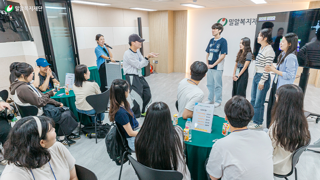 밀알틔움봉사단의 장점 중 하나는 바로 트렌드를 주도하는 *MZ 세대가 똘똘 뭉쳐있다는 것인데요. 각 대학의 MZ가 모였기에, 더욱 창의적이고 아이디어 넘치는 나눔 캠페인이 진행될 것으로 기대됩니다. 이를 위해 밀알틔움봉사단 3기 발대식은 각 대학의 봉사단원들이 서로 친해질 수 있는 레크리에이션과 조별활동 시간을 진행했습니다.