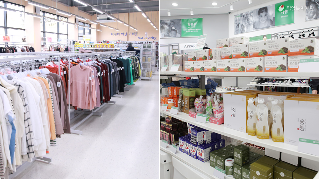 이처럼 밀알복지재단도 장애인과 비장애인의 완전한 사회통합을 위한 전문 복지사업과 함께 친환경을 추구하는 물품후원 사업을 진행하고 있습니다. 밀알복지재단의 물품후원은 개인이나 기업의 물품을 기증 받아 밀알복지재단에서 운영하는 굿윌스토어와 기빙플러스에서 합리적인 가격으로 판매하여 수익금 전액을 장애인 등 사회취약계층 지원 및 일자리 창출을 위해 사용하고 있습니다.