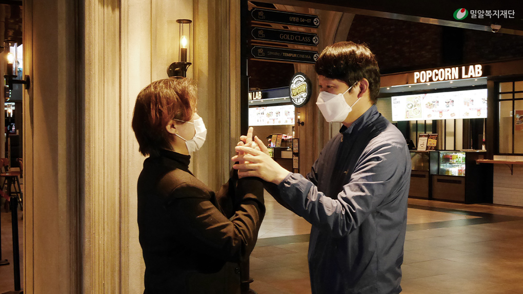 시청각장애인을 위한 영화 <내겐 너무 소중한 너>를 위해 영화 속 주인공인 영화배우 진구와 아역배우 정서연이 수어를 통해 영화소개 및 응원 메시지를 전달해주셨습니다. 영화 속 감동적인 연기를 보여준 두 영화배우는 이번 영화를 통해서 많은 사람들이 시청각장애에 대한 관심을 갖길 바라며 특별히 수어로 영화소개를 진행했습니다.