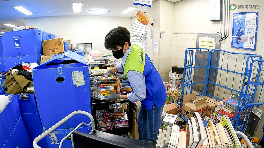 밀알복지재단 굿윌스토어는 개인과 기업으로부터 물품을 기부 받아 판매한 수익금으로 장애인 일자리를 제공하고 있습니다. 얼마 전 김민규 홍보대사는 굿윌스토어 물류창고에 방문하여 기부 받은 물품을 분류하는 봉사활동에 참여했는데요. 물류창고 1층에서 기부된 의상에 오염된 부분이 있는지 확인 후, 2층에서 가방, 신발, 도서 등 물품별로 분류하여 이동하는 작업을 진행했습니다. 김민규 홍보대사는 굿윌스토어 직원에게 어떤 물건이 기증에 적합한지, 분류 작업 시 주의해야 할 점은 무엇인지 등을 배우며 굿윌스토어를 알아가는 시간을 가졌습니다.