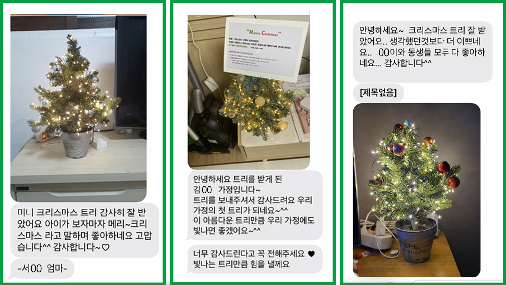 크리스마스 트리를 지원받은 장애아동 가정의 감사 메세지