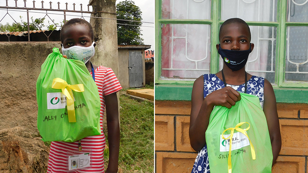 이렇게 십시일반으로 모아진 돌봄키트 구성품을 밀알복지재단 케냐사업장 현지 직원들이 리본을 직접 만들어 단 에코백에 예쁘게 포장하였습니다. 현지 직원들은 아이들이 잘 자라길 바라는 많은 후원자님들의 따뜻한 응원을 가득 담아 돌봄키트를 지원 받을 여아들의 이름을 하나하나 정성껏 적었습니다. 돌봄키트를 배분하는 당일 밀알복지재단 케냐사업장의 앞마당은 들뜬 아이들의 목소리로 가득했습니다. 현지 직원들은 코로나19 감염예방을 위해 소규모로 인원을 나누었고 보호자와 아동들은 배분 장소에 도착하면 가장 먼저 손을 씻은 후 차례차례 키트와 함께 코로나19 예방법이 적힌 자료를 전달받았습니다.