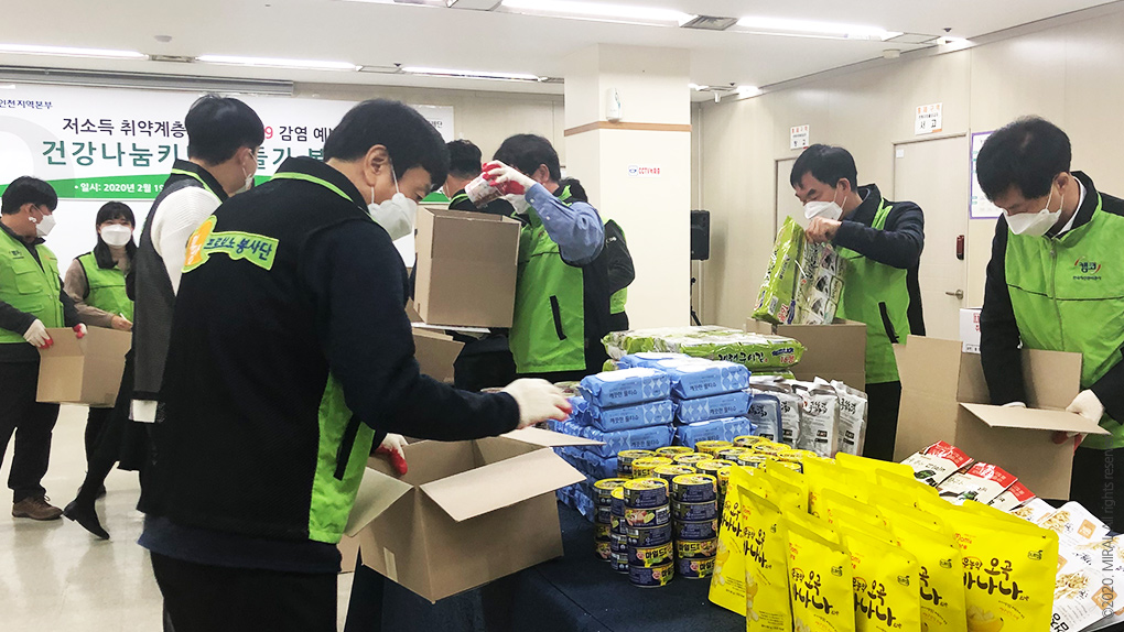 코레일 수도권동부본부 수서관리역 임직원은 저소득 장애인 및 취약계층을 위해 ‘코로나 예방 선물상자’ 만들기 봉사활동을 진행했습니다. '코로나 예방 선물상자'에는 바이러스 감염에 더욱 취약한 소외계층의 면역력 강화를 위한 홍삼 등 건강식품과 마스크, 식료품 등이 담겼습니다.