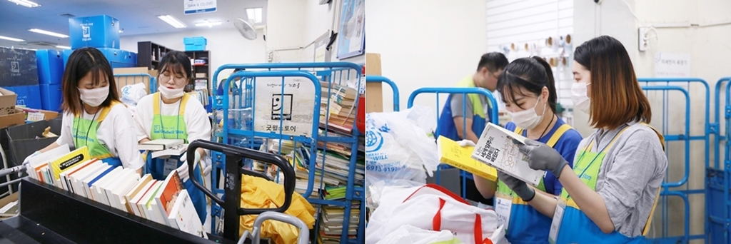 기자단은 8월 21일과 26일에 각각 봉사활동을 진행했습니다. 먼저 21일에는 김예람, 나예은, 이이레, 정혜용, 조아현, 조민지 기자가 봉사활동을 펼쳤습니다. 이날 기자단들이 맡은 업무는 굿윌스토어 밀알송파점에서 기부 받은 물품 중 재판매가 가능한 물건들을 골라내는 작업입니다. 이이레, 조아현 기자는 의류를, 김예람, 나예은, 정혜용, 조민지 기자는 책을 맡았습니다.
