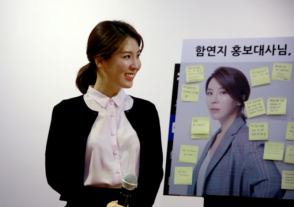 홍보대사 위촉식에서는 함연지 홍보대사와 직원들이 함께하는 시간이 마련되었습니다. 직원들은 평소 함연지 홍보대사에게 궁금했던 부분을 비롯해 홍보대사로서 바라는 점 등을 이야기하는 시간을 가졌습니다. 함연지 홍보대사는 직원들의 질문에 솔직담백한 대답을 하며 화기애애한 분위기를 만들어갔습니다. 봉사활동에 관심을 갖게 된 계기를 묻는 질문에 어릴 적 이야기를 하기도 했습니다.