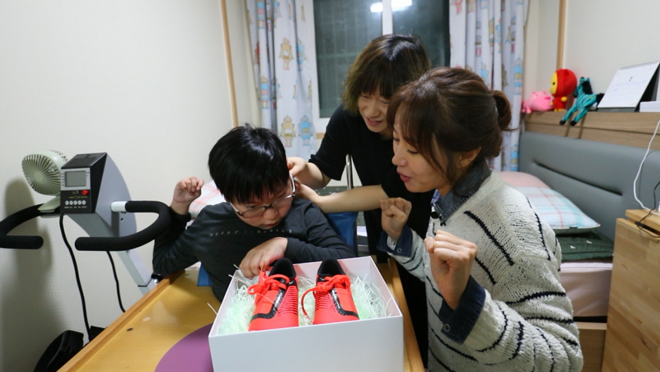 특별히 배우 김희정과 박은빈은 장애아동을 직접 찾아가기도 했습니다. 먼저 배우 김희정은 뇌병변 장애1급을 가진 현민이의 집에 방문했습니다. 조기출산으로 장애를 갖게 되었지만 현민이는 손흥민 선수와 같이 멋진 축구선수가 되겠다는 꿈을 꾸고 있습니다. 다행히 현민이는 인지기능이 정상적으로 발달해있어 재활치료만 꾸준히 받으면 장애를 극복해낼 수도 있지만 경제적인 어려움으로 지속적인 치료를 받기 어려운 상황입니다.