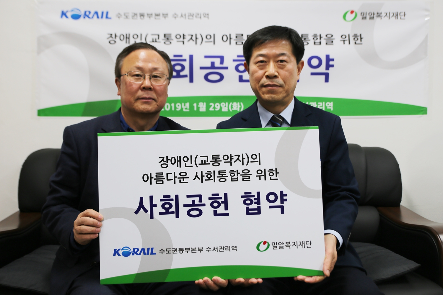 지난 1월 29일, 밀알복지재단은 코레일 수도권동부본부 수서관리역과 교통약자의 이동권 보장을 위한 업무협약을 체결했습니다. 이에 따라 양 기관은 수서역에 휠체어를 비치하고, 각 기관의 구성원들이 도우미가 되어 장애인과 노인, 임산부 등 거동이 불편한 교통약자가 편하게 지하철을 이용할 수 있도록 돕고 있습니다.