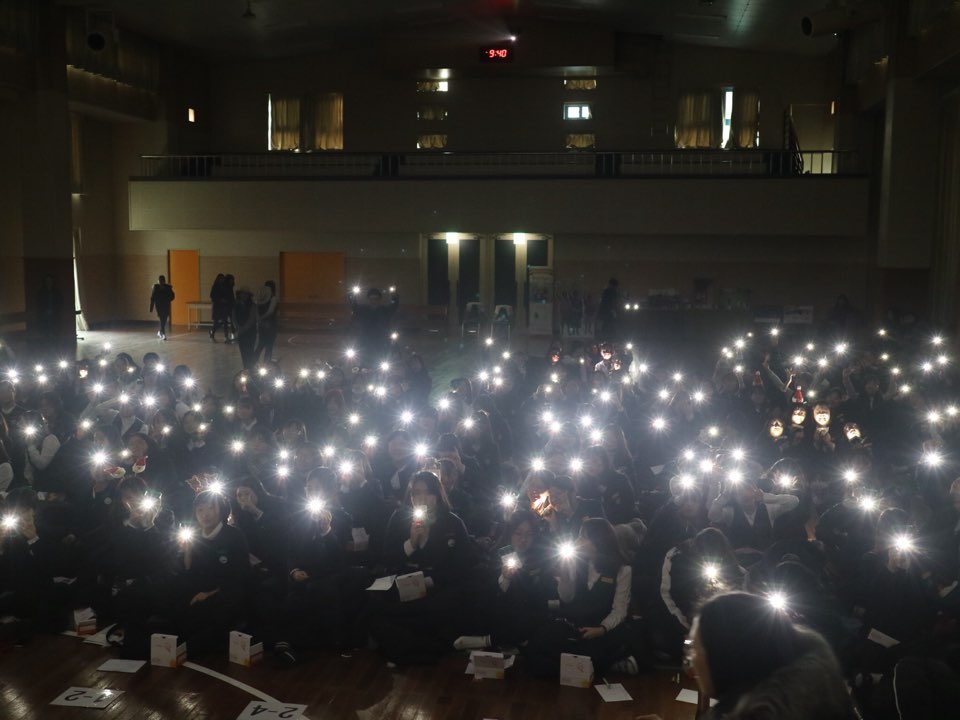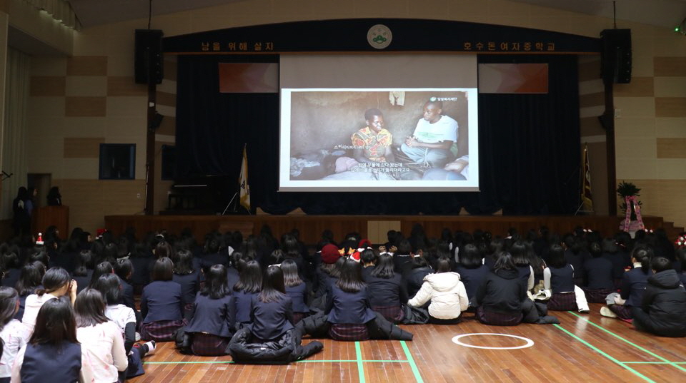 호수돈여자중학교 강당에 모인 전교생 245명은 ‘남을 위해 살자’라는 교훈으로 좀 더 의미 있는 연말을 보내고자 이번 프로그램에 참여하였습니다. 본 프로그램에서 학생들은 해외의 에너지 빈곤국가에서 전기 없이 살아가는 친구들의 삶을 간접적으로 체험하고 태양광랜턴을 직접 조립하고 함께 보낼 희망의 메시지를 작성했습니다.