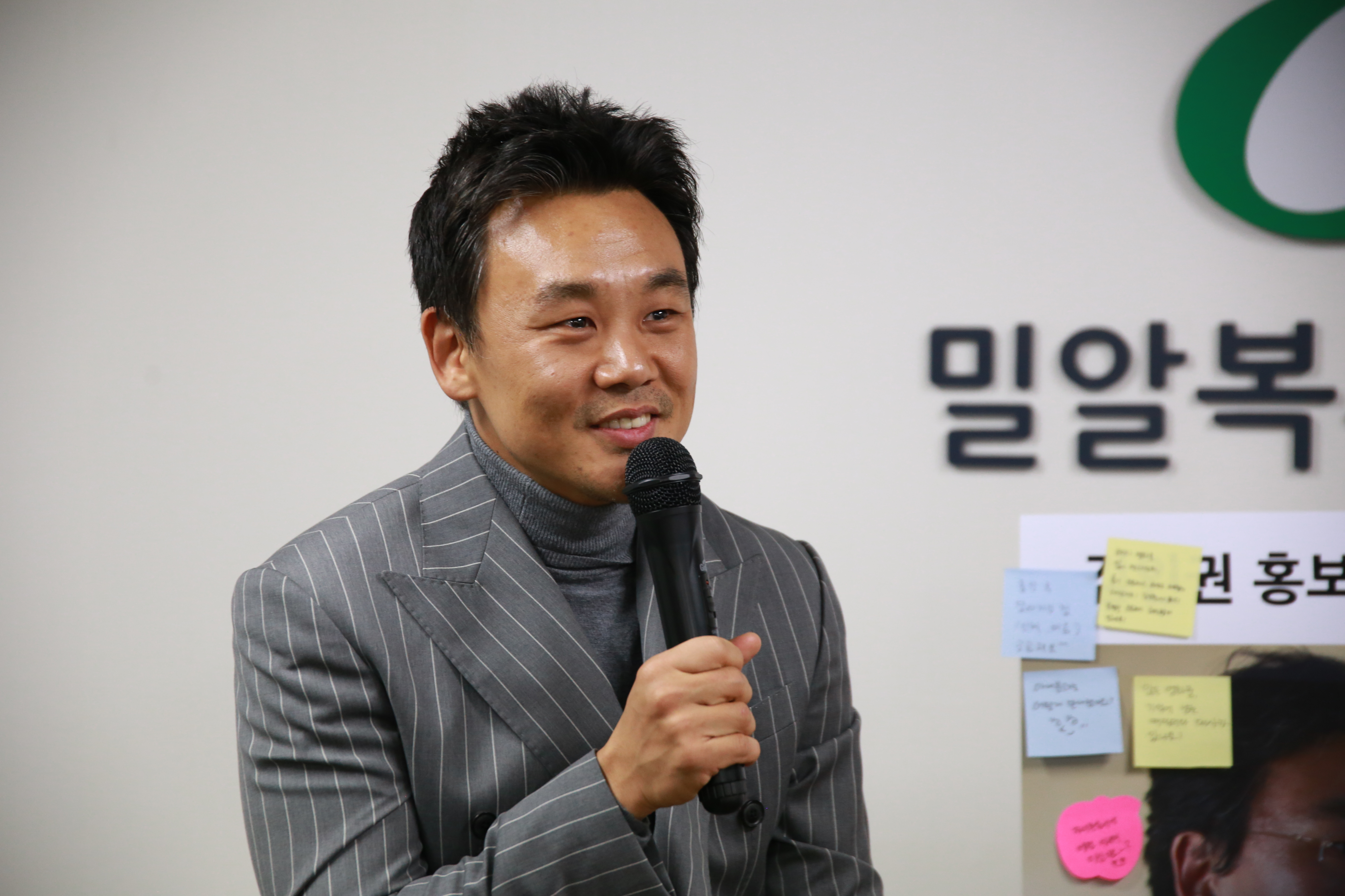 이후 순서로는, 김인권 홍보대사와 직원들이 함께하는 시간이 마련되었습니다. 평소 김인권 홍보대사에게 궁금했던 것을 묻기도 하고 앞으로 밀알복지재단을 위해 해주셨으면 하는 일들에 대해 요청하기도 하는 시간을 가졌습니다. 김인권 홍보대사는 질문에 성의껏 답변해주시며 직원들에게 감사와 응원의 인사를 전했습니다.