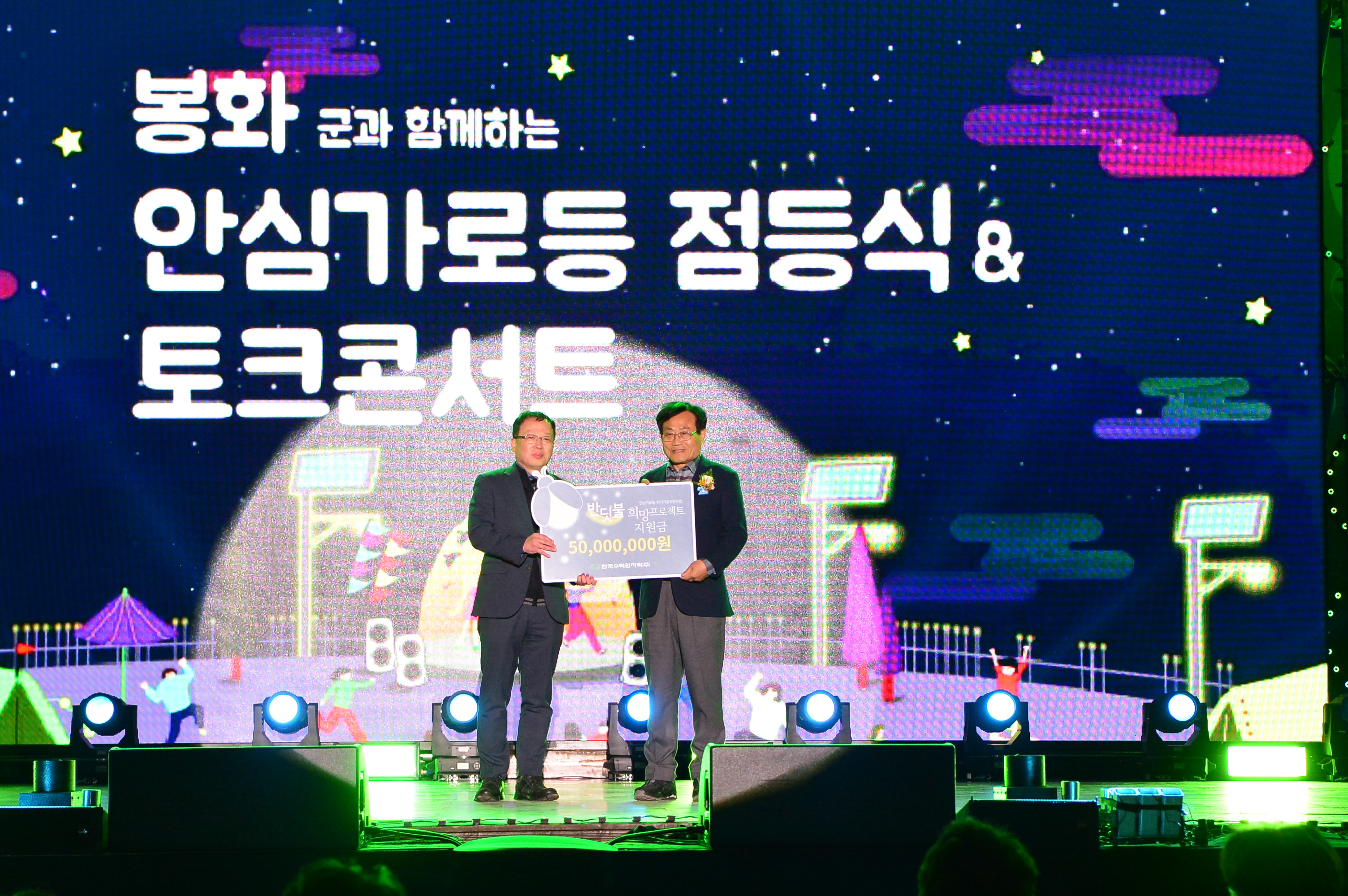 밀알복지재단은 지난 10월 27일(토) 경상북도 봉화군에서 ‘안심가로등 점등식’ 행사를 진행했습니다. 이날 행사는 봉화군 지역 주민들의 안전한 밤길 보행 및 차량 사고의 위험성을 줄이고자 태양광 가로등 50본을 설치한 것을 기념하여 열렸습니다.