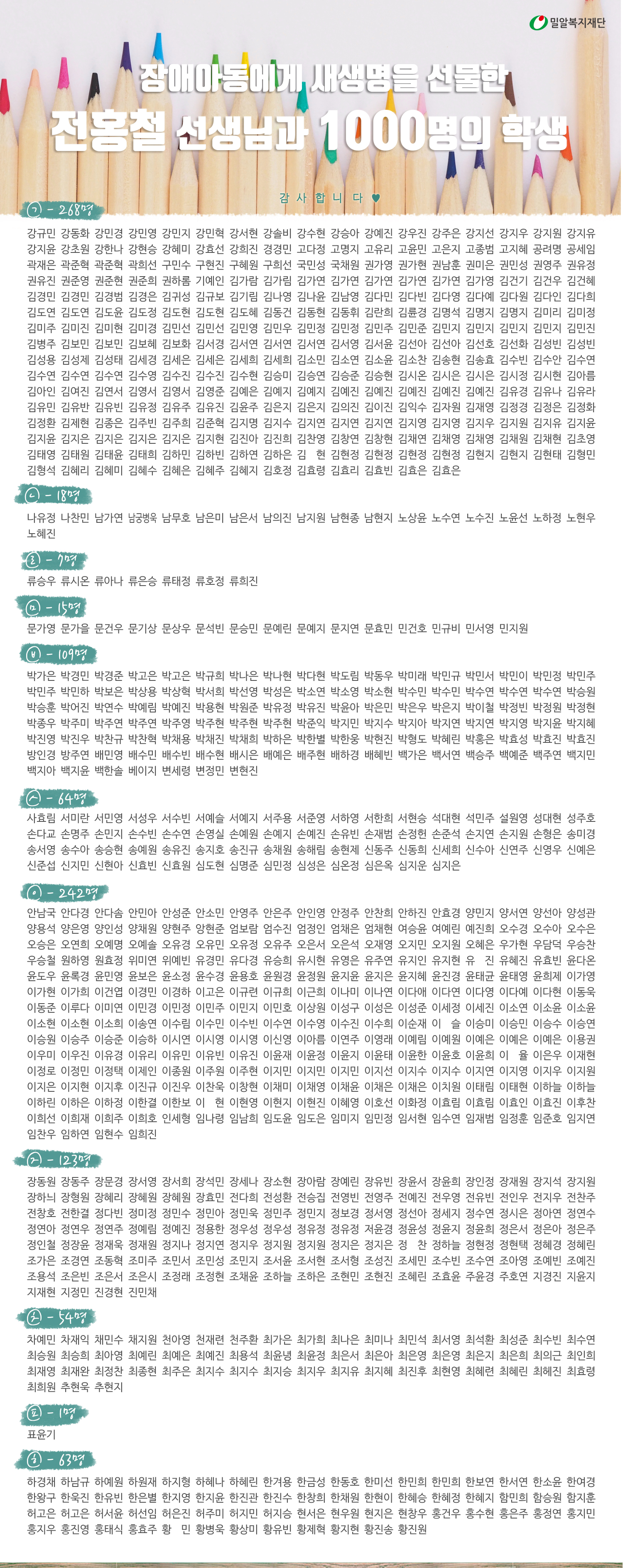 앞으로도 전홍철 강사님은 학생들과 함께 장애아동의 의료비 지원을 위한 기부 캠페인을 지속적으로 진행할 예정입니다. 우리 주변에 도움이 필요한 이웃을 위해 나눔 문화를 확산하는 데에 노력해주시는 전홍철 강사님께 깊은 감사를 드립니다.