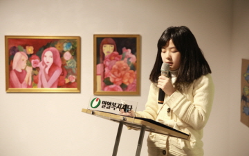 “발달장애 청소년 예술지원사업의 프로젝트명인 ’봄(seeing&spring)’에는 발달장애 청소년들의 가능성을 ‘보고(seeing)’, 그들이 예술가로서 성장하여 ‘봄(spring)’과 같은 희망의 시기를 맞이하기를 바란다는 의미가 담겨 있습니다. 그림 속에 표현된 작가들의 행복하고 자유로운 세계가 관람객 여러분에게도 색다른 감동으로 다가오기를 바라며, 앞으로도 작가들에게 관심과 응원을 전해주시길 부탁드립니다.”