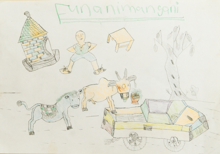 <10년 후의 우리 마을, 34.5x23.5cm, 스케치북에 색연필, 2017 ⓒ후나니 만가니, 말라위>