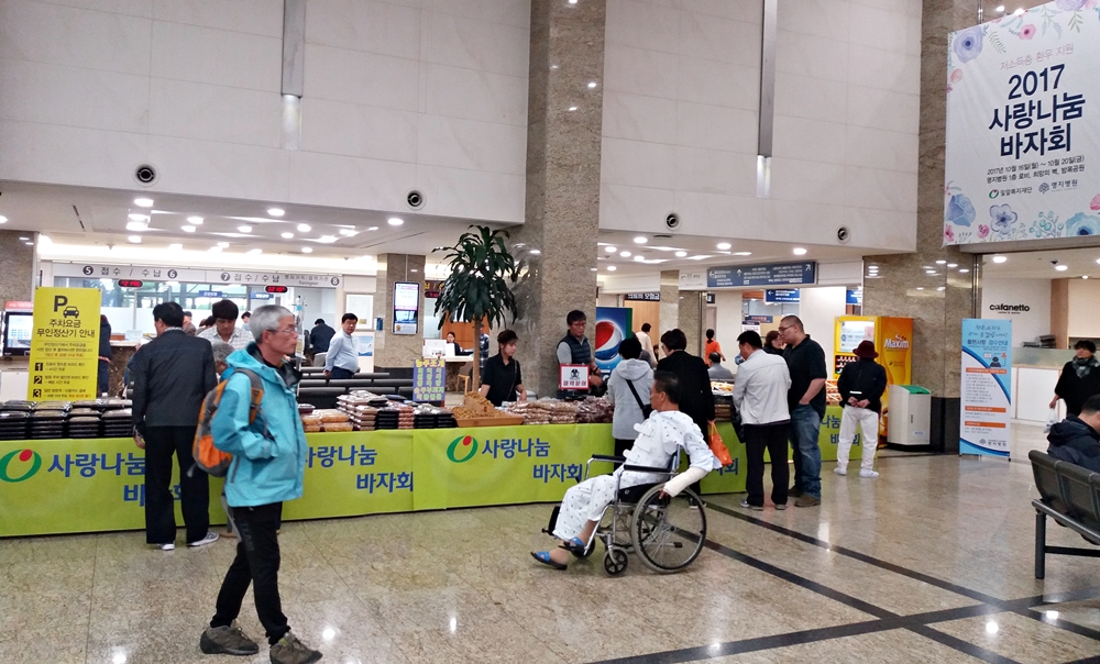 밀알복지재단 경기지부는  명지의료재단(이사장 이왕준)과 지난 10월 16일부터 20일까지 경기 고양시에 위치한 명지병원 본관에서 ‘2017 사랑나눔 바자회’를 개최하였습니다. 이번 바자회의 수익금 일부는 저소득층 환우들의 치료비로 사용될 예정입니다.