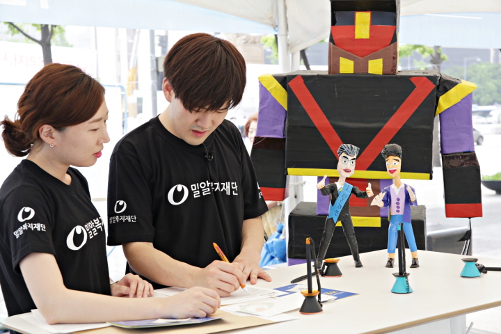이 날의 퍼포먼스는 지난 5월, 박태현 작가가 참여한 장애인 인식 개선과 복지 관련 새 정책을 제안하는 애니메이션 영상을 바탕으로 마련되었습니다. 애니메이션에는 장애인과 비장애인이 차별 없이 살 수 있는 세상, 장애인에게도 교육과 일자리의 기회가 주어지는 사회를 바란다는 박태현 군을 비롯한 장애인들의 염원이 담겨있습니다. 박태현 작가는 광화문 광장에서 밀알복지재단 직원들의 도움을 받아 함께 정책 제안서를 작성한 후, 자신의 그림과 목소리로 만들어진 영상을 담은 USB를 광화문1번가에 제출하였습니다.