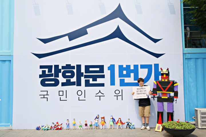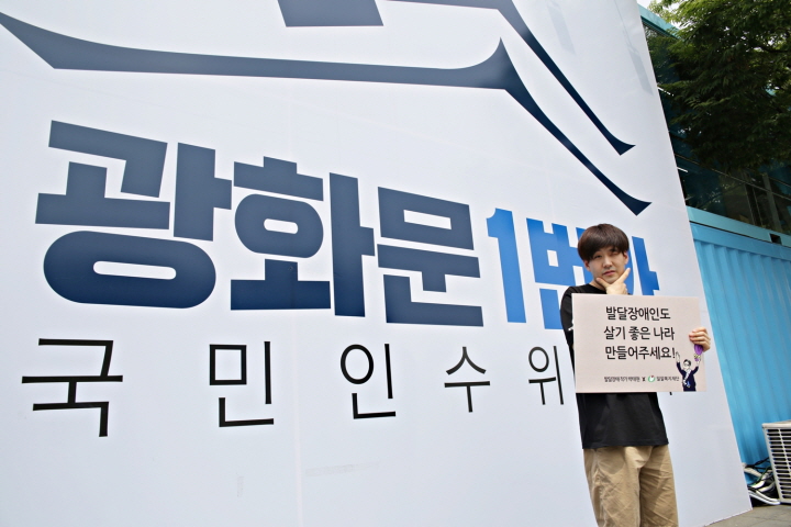 "장애인도 살기 좋은 나라 만들어주세요! - 발달장애 작가 박태현, 광화문 1번가에서 외치다.