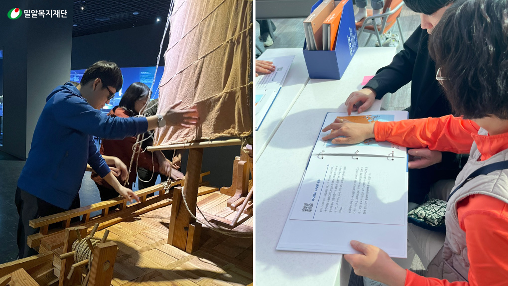 특히 이곳은 무장애(배리어프리, Barrier Free) 요소를 도입한 다중 감각 체험형 콘텐츠가 마련되어 있어, 장애인들이 오감을 통해 전시물을 더욱 풍부하게 관람할 수 있도록 구성되어 있었는데요. 시청각장애인들도 전시된 해양 유산과 점자 안내판 등을 직접 손으로 만져보며, 더욱 생생하고 의미 있는 경험을 할 수 있었습니다.