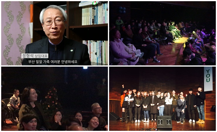 밀알복지재단 정형석 상임대표의 환영 인사를 시작으로 재단과 부산지부에 대해 알아가는 시간이 이어졌으며, 미니콘서트를 기대하는 글을 블로그에 사전에 게시한 후원자분께 특별선물을 증정하는 시간을 가지기도 하였습니다.