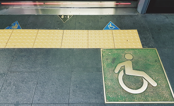 휠체어로 찾아가는 경의선 숲길 공원공항철도를 타고 홍대역에서 내리면 지하철 안의 엘리베이터가 있다. 4-1번 승강장에서 내리면 엘리베이터를 이용할 수 있다. 지하 2층 편의점을 지나 3,4번 출구로 나가는 개찰구를 통과한 후 우회전하면 지상으로 가는 엘리베이터를 이용할 수 있다. 이 엘리베이터를 이용해 지상1층으로 올라가면 지하철 4번 출구로 나가게 된다. (시각장애인은 4-2번 승강장에 점자보도블록이 있으므로, 4-2 승강장에서 내리면 편리하다.) 출구로 나온 후 좌측으로 3~4분 정도 직진 후 횡단보도를 건너면 ‘경의선 숲길 공원’ 표지판을 볼 수 있다.