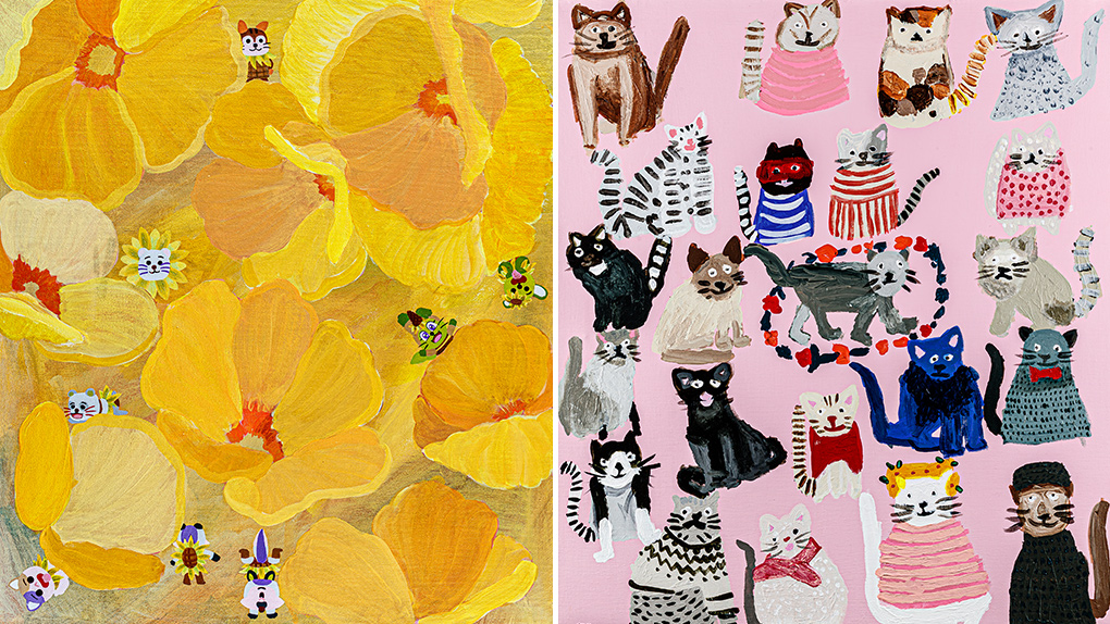 (좌)김지우 작가, ‘해바라기 캐릭터’ / (우)현승진 작가, ‘핑크동물 세상’