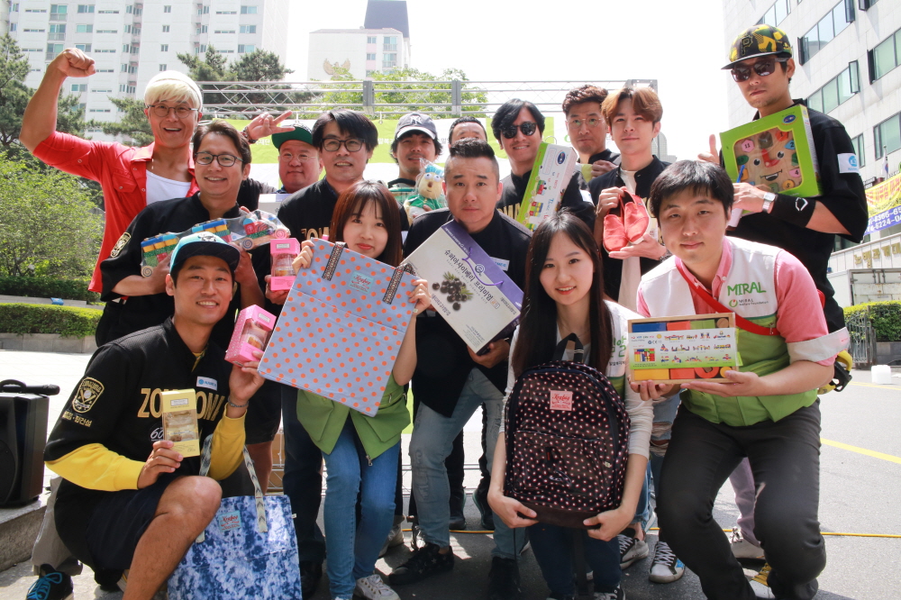 밀알복지재단과 대치4동 주민센터, 대치베스트상인회는 23일(월), 대치동 포스코사거리에서 개그맨 심현섭, ‘광수생각’의 저자 박광수 등이 소속된 연예인 야구단 조마조마 멤버 10여명과 함께 저소득가정 장애아동을 돕기 위한 ‘착한 바자회’를 개최했습니다.