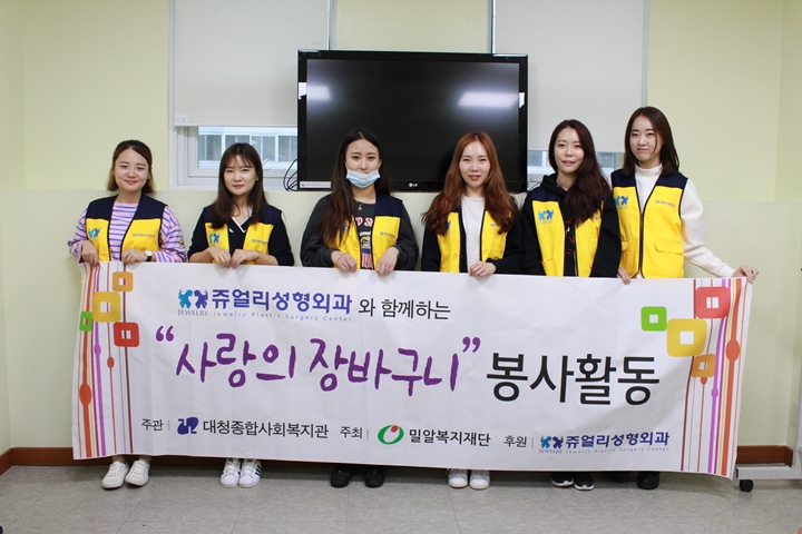 쥬얼리 성형외과, 따뜻한 이웃사랑 실천어버이날을 맞이하여 지난 5월 3일(화), 쥬얼리 성형외과에서는 저소득 소외계층을 위한 사랑의 장바구니 봉사활동을 진행하며, 이웃 사랑을 실천하는 뜻 깊은 시간을 가졌습니다.