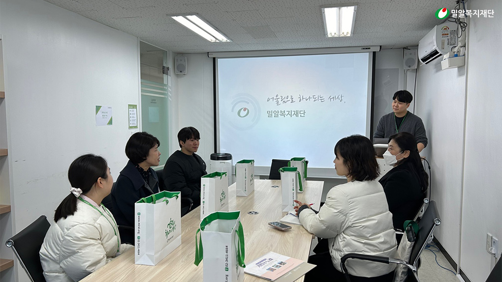 먼저 직원 교육 프로그램으로는 신규직원 워크숍이 있습니다. 새롭게 밀알복지재단에 들어오신 분들께 밀알정신이 무엇인지 인지하고, 주요 사업들을 이해할 수 있도록 하는 것이 목적인데요. 재단에서 운영하는 장애인 복지관이나 굿윌스토어와 같은 근로사업장 등을 방문해 장애인 복지 현장을 체험하기도 하고, ‘어둠속의 대화’ 같은 시각 장애를 체험해 볼 수 있는 전시회에 방문하기도 하는데요. 이러한 활동을 통해 기수별로 팀빌딩이 잘 되어 동기를 만들어 주는 것이 큰 목표입니니다.
