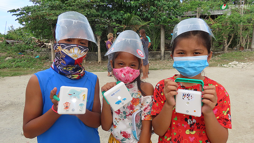 학교를 갈 수 없는 아이들은 주1회 지급되는 모듈(학습지)로 집에서 혼자 학습해야 했습니다. 그러나 빈곤 가정의 아이들은 낮 시간에 부모님의 집안일을 돕거나 동생들을 돌보느라 캄캄한 밤이 되어서야 공부를 할 수 있었습니다. 하지만 전기 공급이 되지 않는 가정의 아이들은 책을 읽을 수 없는 현실에 놓여있었습니다. 이에 필리핀 세부 사업장은 아이들이 꿈을 잃지 않고 학업을 지속할 수 있도록 담사이트, 이바바오 지역 아동청소년 850가정에 태양광랜턴을 지원했습니다.