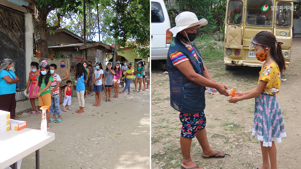 필리핀은 코로나19 확산을 막기 위해 외국인의 출입도 엄격하게 통제 할뿐 아니라, 국가 내에서도 연령에 따라 외출 금지령이 지속되고 있습니다. 특히 학교의 경우 *원격교육 형태로 진행되어 아이들은 학교에 등교를 못한지 벌써 1년이 넘었습니다. 지역 내 봉쇄정책으로 필리핀 세부 사업장이 지원하고 있는 담사이트, 이바바오 지역 주민들은 일자리를 잃기도 하고, 소득이 없어지게 됨에 따라 마을 전체가 수도 공급이 중단되기도 했습니다.