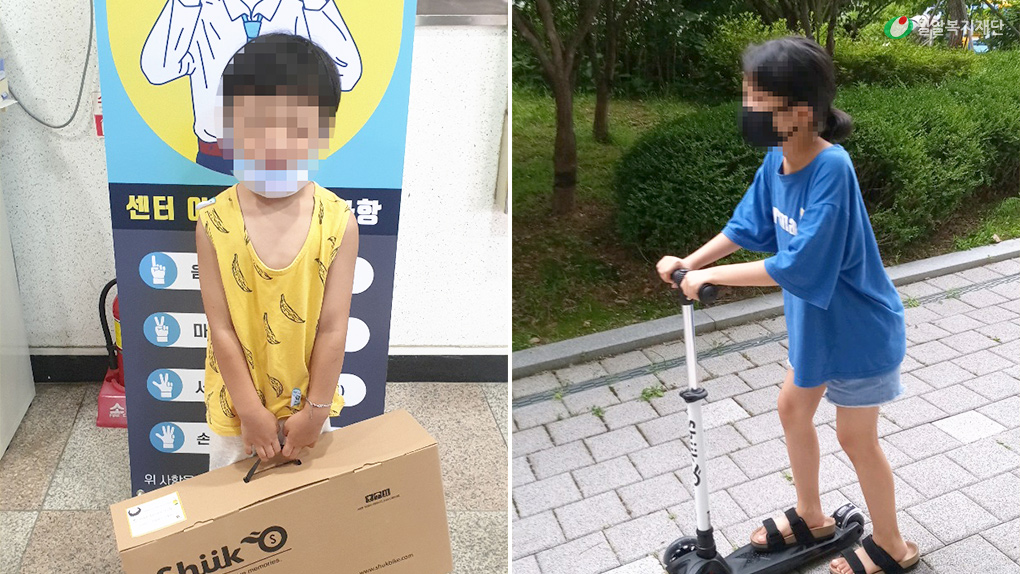 킥보드를 선물 받은 아동들