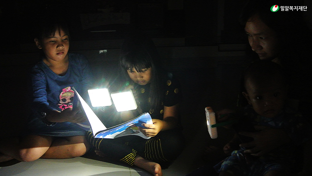 전기 공급이 부족한 열악한 환경에서 학업도, 생계도 이어나가기 어려웠던 각 나라의 아이들. 이제는 어둠 속에서 빛을 밝혀주는 태양광랜턴이 있어 건강하고 안전하게 살아가고 있습니다. 태양광랜턴은 아이들에게 어둠을 밝히는 빛이 되어줄 뿐 아니라, 학업을 통해 꿈을 키우는 희망의 빛이 되었습니다. 앞으로도 밀알복지재단은 에너지빈곤국가에 더 많은 태양광랜턴을 전달하여 각 나라의 아이들과 지역 주민들이 밝은 미래를 꿈꿀 수 있도록 함께하겠습니다.