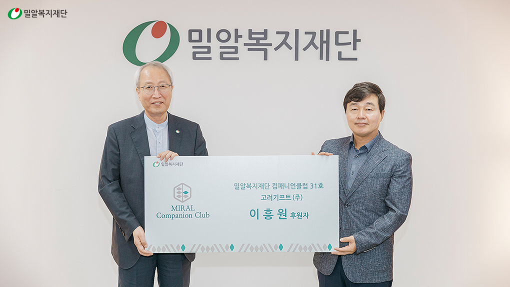 컴패니언클럽 31호 이흥원 후원자에게 위촉패를 전달한 밀알복지재단 정형석 상임대표는 “10년이라는 긴 시간동안 소외된 이웃을 향한 끊임없는 나눔을 실천해주신 이흥원 후원자님의 컴패니언클럽 위촉이, 보다 많은 분들께 도전과 용기가 되어주었으면 합니다.”라고 말하며 선한 영향력이 계속해서 이어지길 소망했습니다. 이웃 사랑을 고민에서 그치지 않고 꾸준한 나눔의 실천으로 밀알복지재단과 함께해 주신 이흥원 후원자에게 다시 한번 감사드리며, 앞으로도 후원자와 동행하는 ‘컴패니언클럽’에 많은 관심 부탁드립니다.
