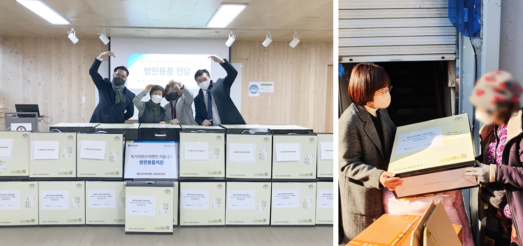 어르신들께 방한용품을 전달하는 모습