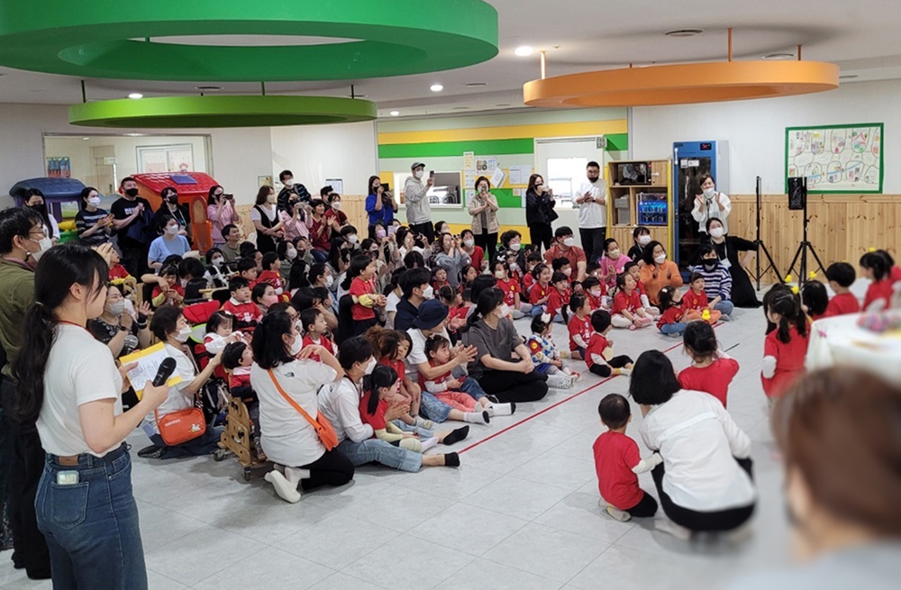 한마음어린이집을 이용하는 장애영유아와 부모님 그리고 인근 비장애인 어린이집의 영유아와 부모님들이 함께 모여 '어린이날 작은 잔치'를 열었습니다. 장애-비장애 친구되기 프로그램의 일환으로 열린 이번 행사에서는 폐비닐로 만든 화분 꾸미기, 대형 퍼즐로 놀기, 교통안전놀이, 손 씻기 놀이 등의 다채로운 활동이 진행되었습니다. 이번 행사는 놀이를 통해 자연스러운 장애인식개선의 장을 열었다는 점에서 의미를 더했습니다.
