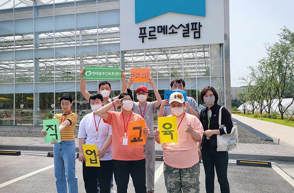 5월 26일, 한마음주간보호센터에서는 직업훈련 체험을 통한 직업탐색의 기회를 마련하고자 여주 푸르메 소셜팜으로 체험활동을 다녀왔습니다. 발달장애인이 작업하는 방울토마토 온실에서 방울토마토 따기 체험을 해보며 간접적으로나마 직업현장을 경험해 보았습니다.