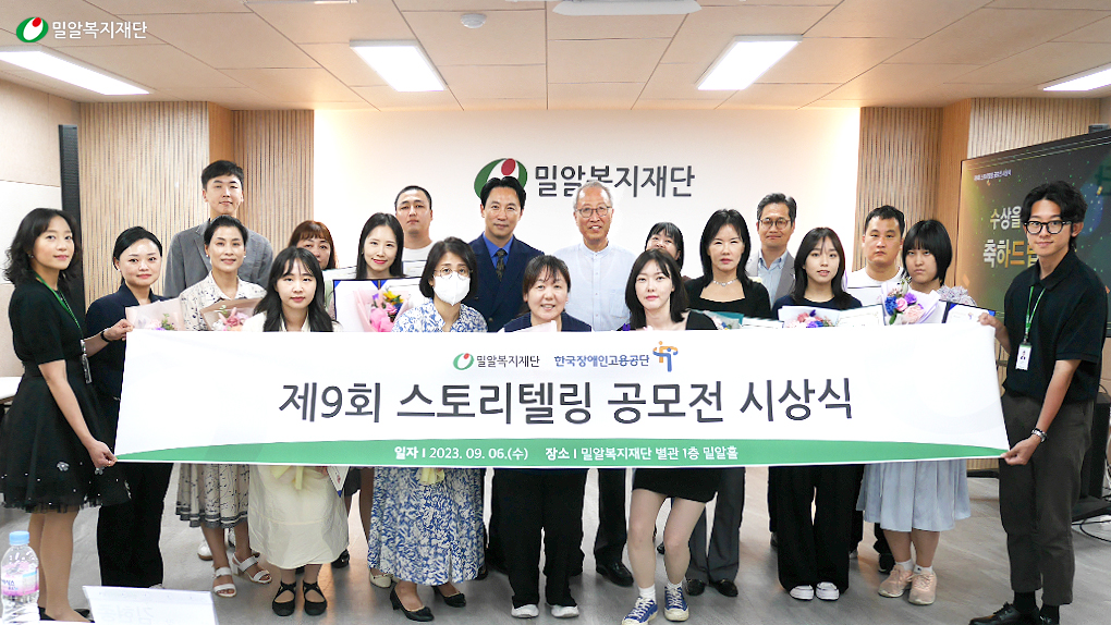 지난 9월 6일, 밀알복지재단 별관 밀알홀(강남구 수서동)에서 제9회 스토리텔링 공모전 시상식이 개최되었습니다. 시상식에는 밀알복지재단 정형석 상임대표, 한국장애인고용공단 김현종 실장을 비롯해 수상자와 수상자의 가족, 지인들이 함께 참여했습니다.