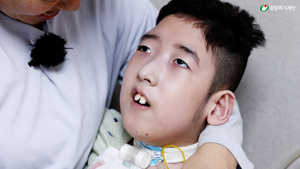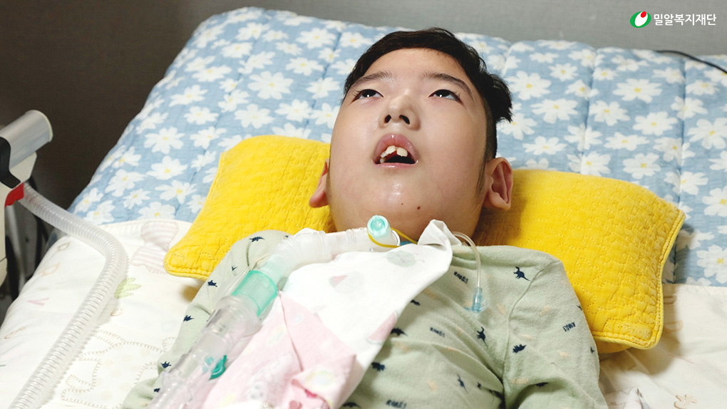 왜소한 체격을 가진 은수. 은수는 먹는 것을 참 좋아했습니다. 그러나 기관절개술 이후 음식을 씹지 못하게 되며 현재는 위루관을 통해서만 특수영양식을 섭취하고 있습니다. 생존을 위한 어쩔 수 없는 선택이었지만 먹는 즐거움을 앗아간 것 같아 엄마는 미안한 마음뿐입니다.