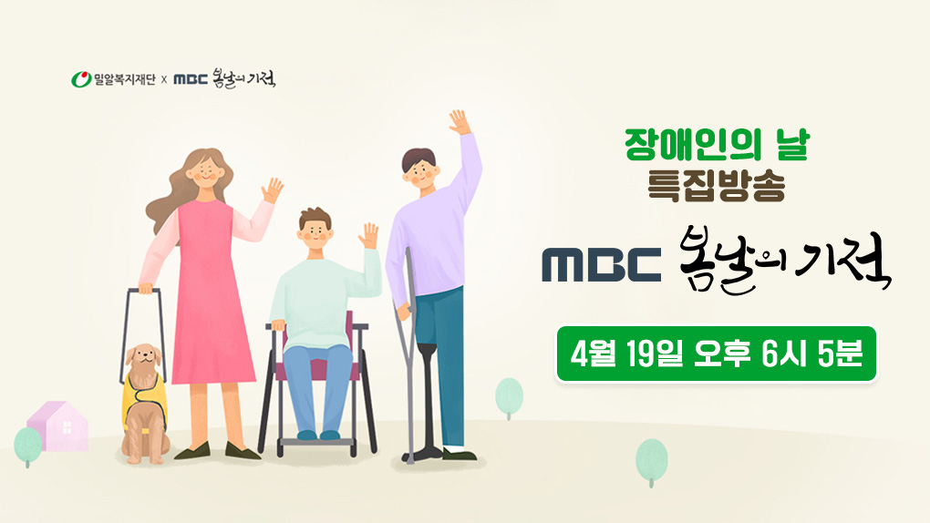 이에 밀알복지재단은 장애로 고통받는 이들 또한 건강한 일상을 살아가기를 바라며, 장애인의 날을 맞아 MBC와 함께하는 특집 프로그램 ‘봄날의 기적’을 기획했습니다. ‘봄날의 기적’은 긴급 지원이 필요한 장애 아동에게 의료비를 제공해 치료의 골든타임을 놓치지 않도록 지원하는 캠페인으로, 적기에 치료가 필요한 장애 아동들에게 기적을 선물하여 더 나은 내일을 응원합니다.